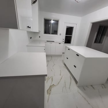 Des cuisines sur mesure en granit, marbre et quartz — installées avec précision à Montréal.