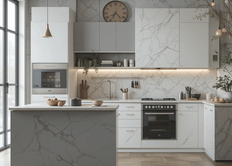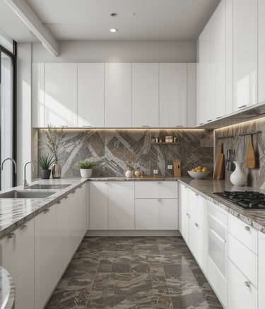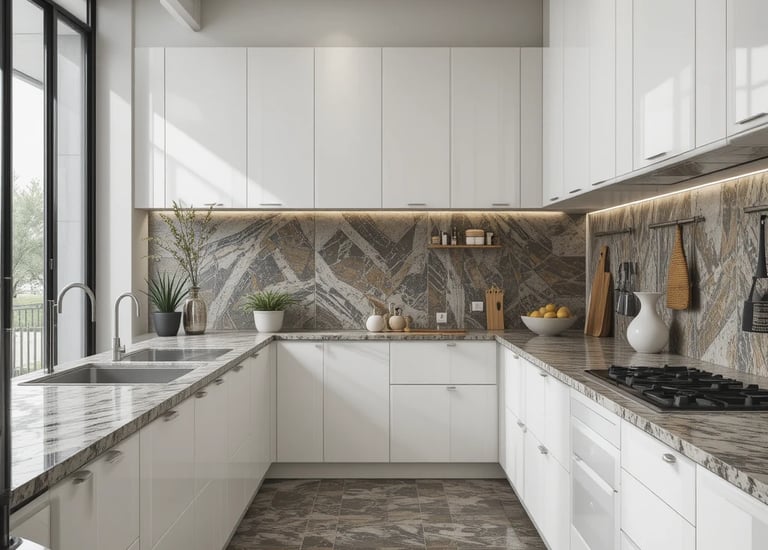 Découvrez nos comptoirs en granit, marbre et quartz haut de gamme.